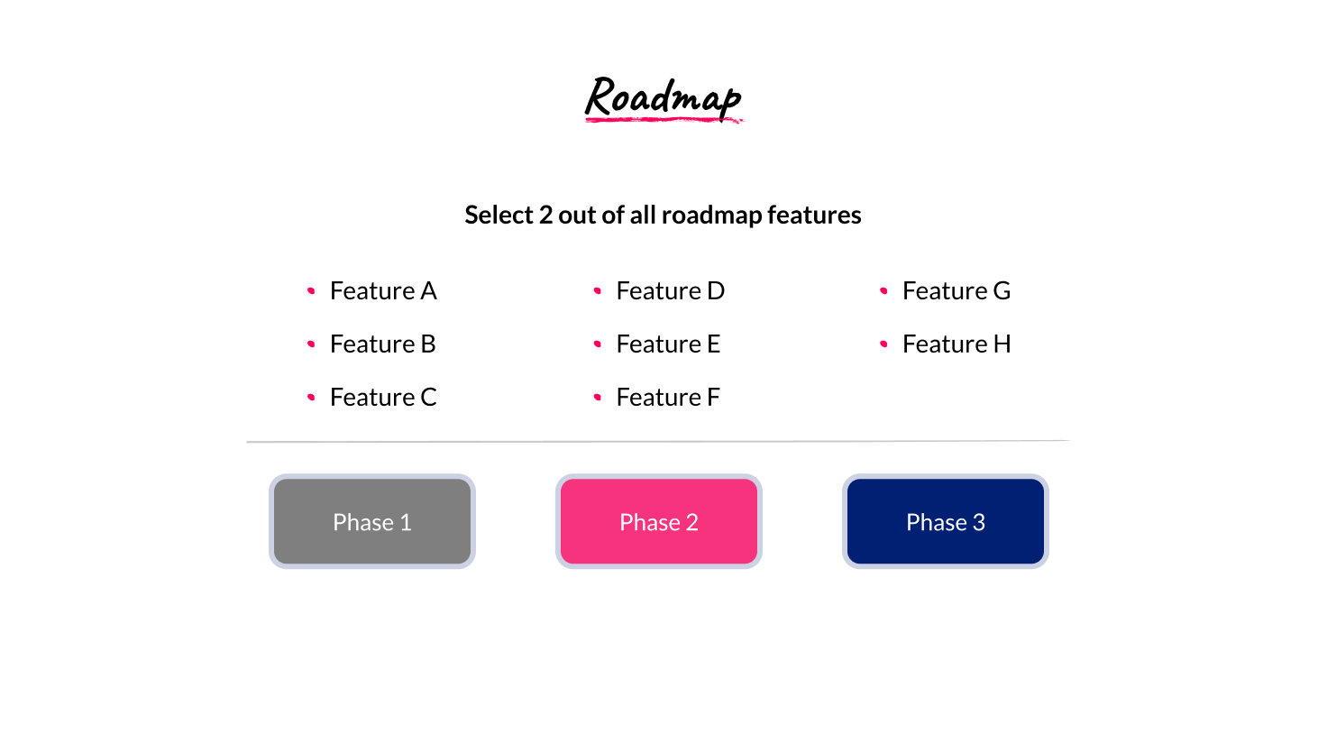 The final step for the interview and post interview (which is not mandatory) is introducing the Interviewee to product roadmap. In probing the product direction, we give the Interviewee a list of features, that we the product team considers building, and force them to choose a 2 or 3 out of all the ones provided.